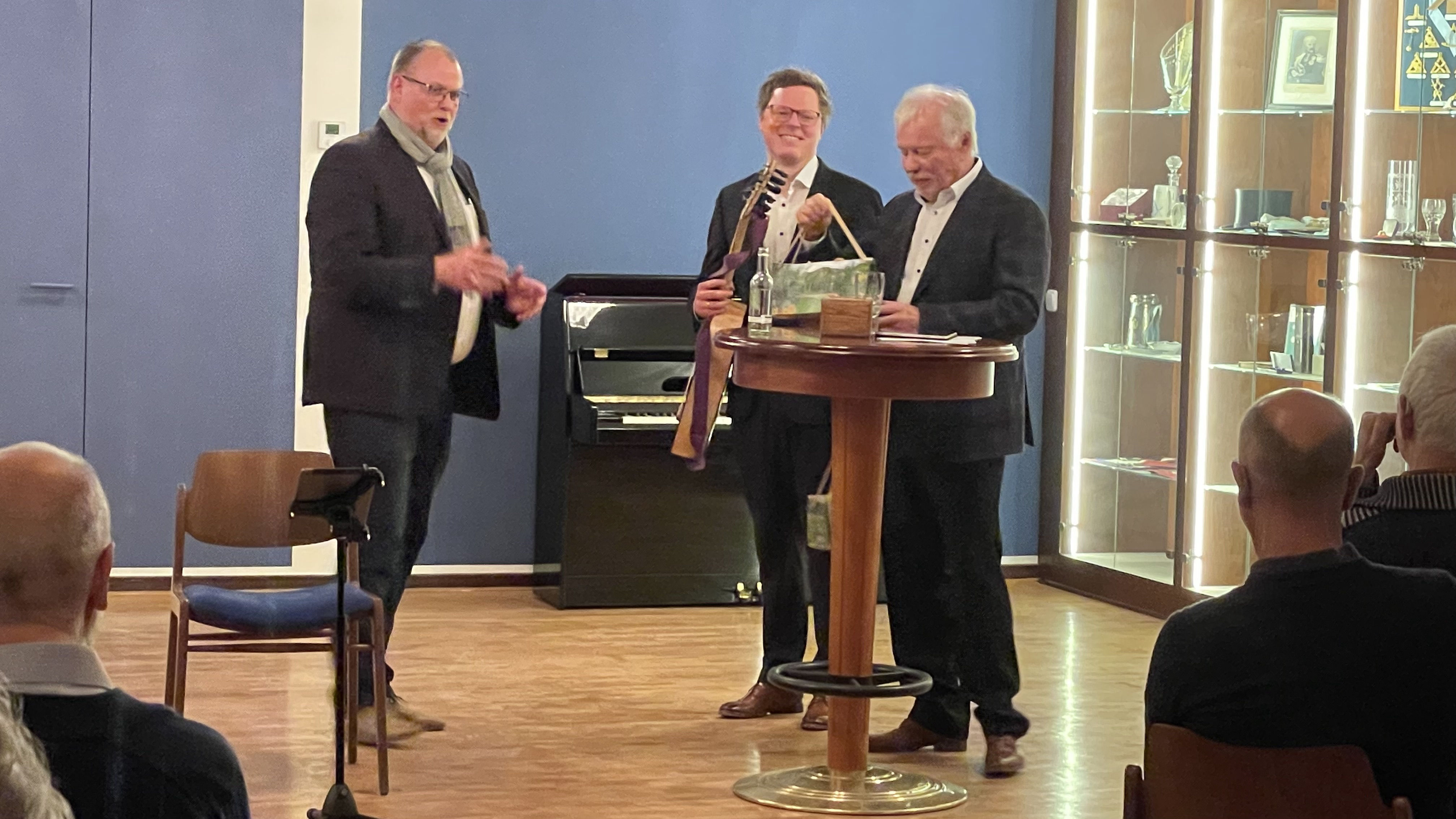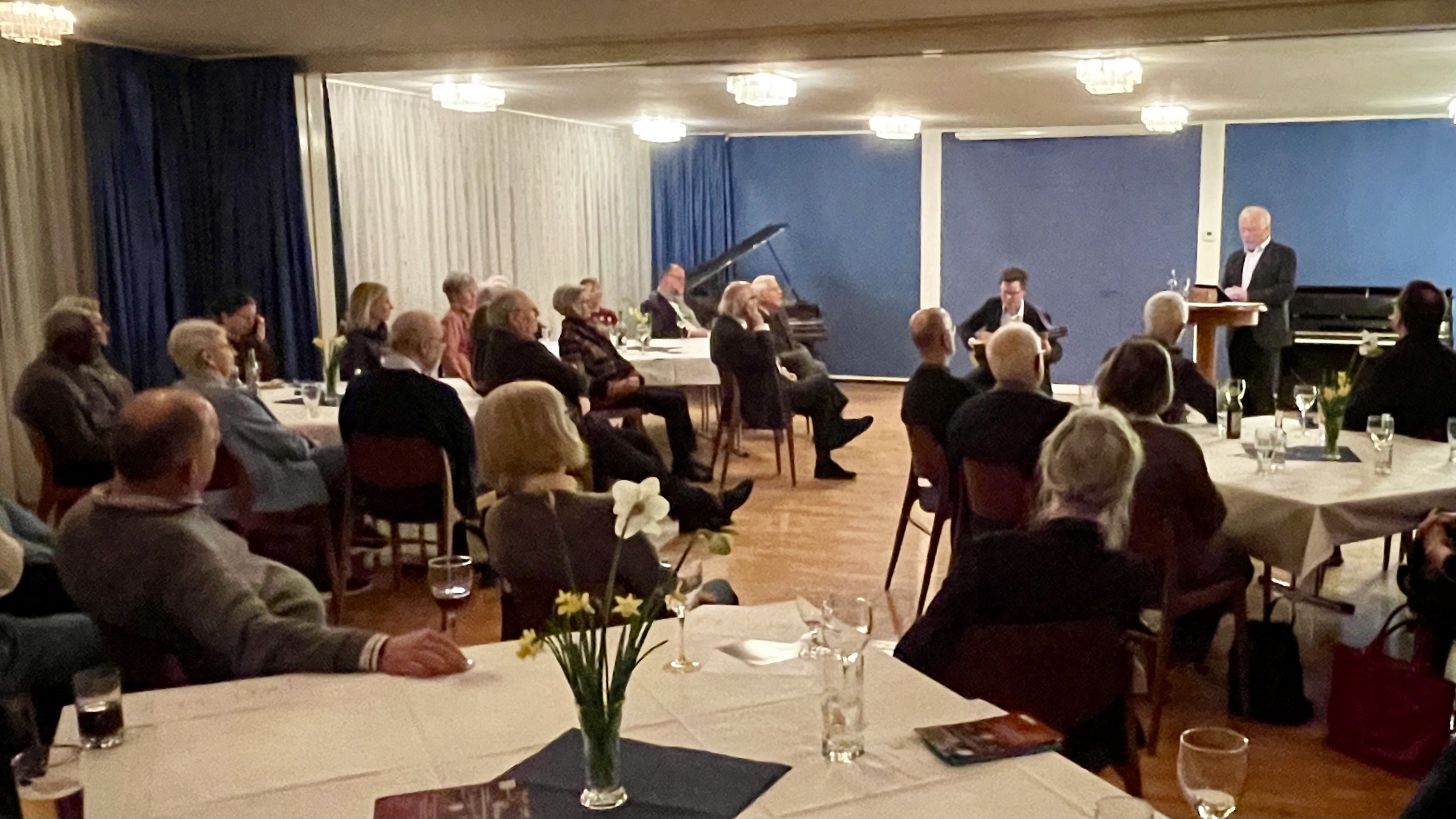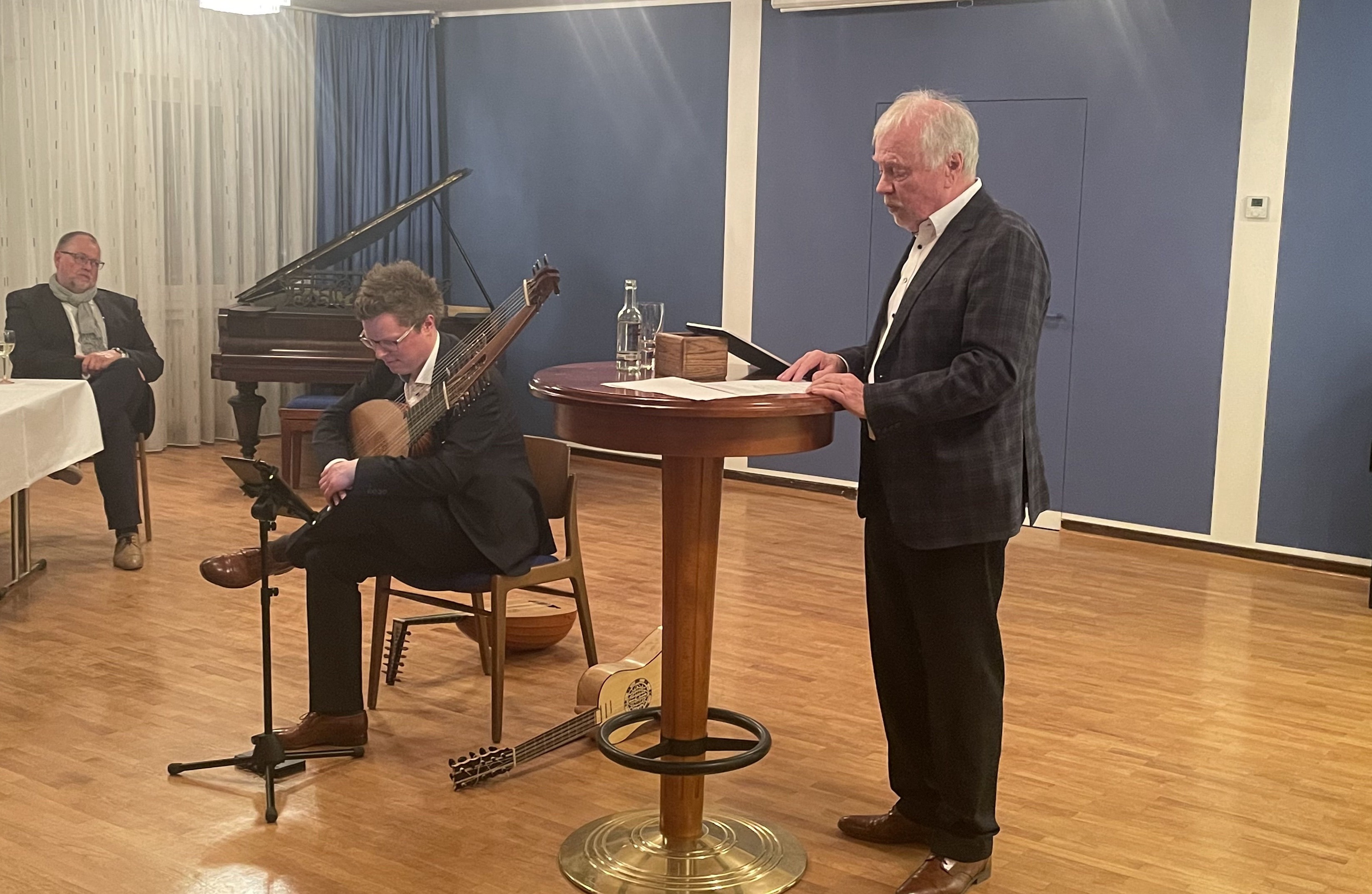 im Dialog mit Sonetten des Barocks boten dem Publikum am Mittwochabend eine besondere akustische Kost in den Räumlichkeiten unserer Loge, ergänzt durch Getränke und Antipasti für den Gaumen. Diesen gesamtkulturellen Genuss boten der virtuose Gitarrist Stefan Koim aus Hamm und als Rezitator und Moderator Burkhard Lau aus Unna.