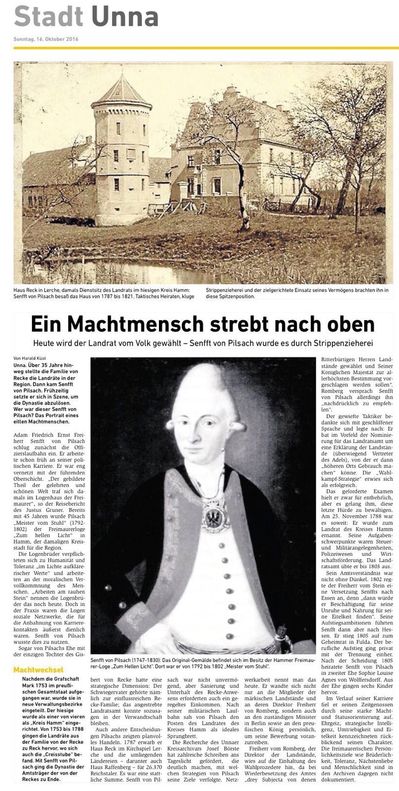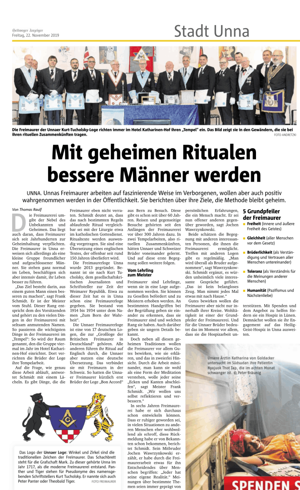 Hellweger Anzeiger 8.September 2021, Gründung einer neuen Freimaurerloge in Kamen Heeren