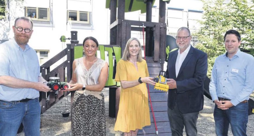 len Licht" (Zweiter von rechts), jetzt symbolisch 2000 Euro an Marie-Christine Ostermann (Mitte) und Bianca Wirtz vom Förderverein der Kinder-und Jugendklinik übergeben - im Beisein von Tobias Klingenberg von der Geschäftsführung des Evangelischen Krankenhauses. Ursprünglich war die Finanzierung des gut 70000 Euro teuren Projekts bereits gesichert. Doch nachdem der TÜV bei mehreren Geräten Nachbesserungen beispielsweise beim Fallschutz gefordert hatte, fehlten rund 6000 Euro,
