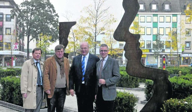 Die ersten Kunstwerke (nach dem symbolischen Grenzpfahl), die den Platz der Deutschen Einheit bereichern sollen, sind gestern eingeweiht worden. Eine zweiteilige Eisenplastik – geschaffen vom Künstler Helmut Berger – mit dem stilisierten Konterfei von Heinrich von Kleist konnte mit Mitteln der Loge Zum hellen Licht errichtet werden.