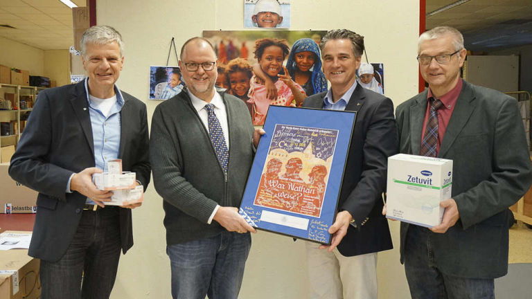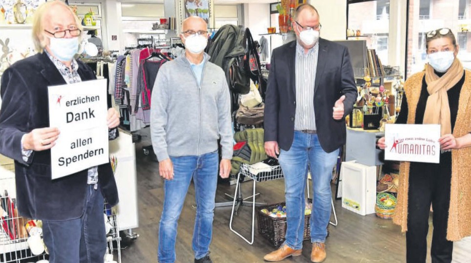 Der Verein Humanitas ist dankbar für eine Vielzahl von Spenden. Die größte Einzelspende von 1000 Euro überreichten Peter Pollmeier (Zweiter von links) von der Freimaurerloge „Zum hellen Licht“ und Gisbert Sander (Zweiter von rechts), Vorsitzender des Vereins Kunst-Kultur-Humanität, an Petra Adler-Jungeilges und Werner Kaßen von Humanitas.