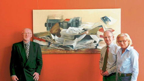 Hier knüpfte Gisbert Sander, Meister vom Stuhl der Hammer Freimaurerloge, an, war doch der 11. Mai, das Eröffnungsdatum dieser Retrospektive gleichzeitig der 40. Jahrestag der Brandkatastrophe von Bradford. Aus derStädtepartnerschaft zwischen Hamm und Bradford entsprang ebenfalls einePartnerschaft zwischen den beiden Freimaurerlogen, denen sich Jockel Reisner stets verbunden fühlte.